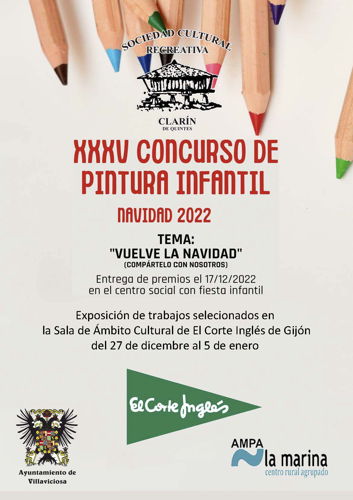 Queda convocada oficialmete la 35 edición del concurso de pintura infantil que esta sociedad cultutal organiza tradicionalmente junto con El Corte Inglés y el AMPA Cra La Marina.