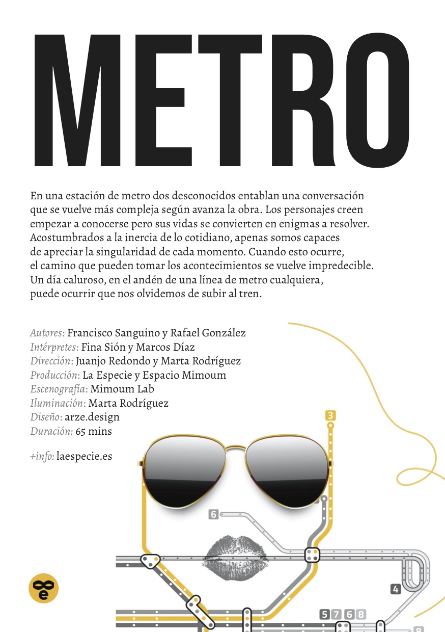 Este sábado 15 de abril a las 20:00 horas la compañía «La Especie» nos presenta la obra «Metro» en nuestro local social.