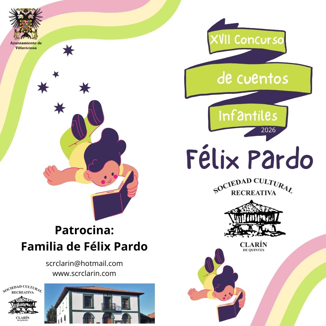La Sociedad Cultural y Recreativa (SCR) Clarín de Quintes (Villaviciosa-Asturias), convoca la decimoséptima edición del certamen literario de Cuentos Infantiles “Félix Pardo”. El concurso pretende estimular, reconocer y difundir la dedicación, el esfuerzo y el buen hacer de quienes emprenden y asumen, con acierto, la práctica u oficio de escritura.