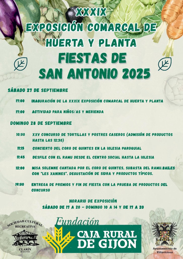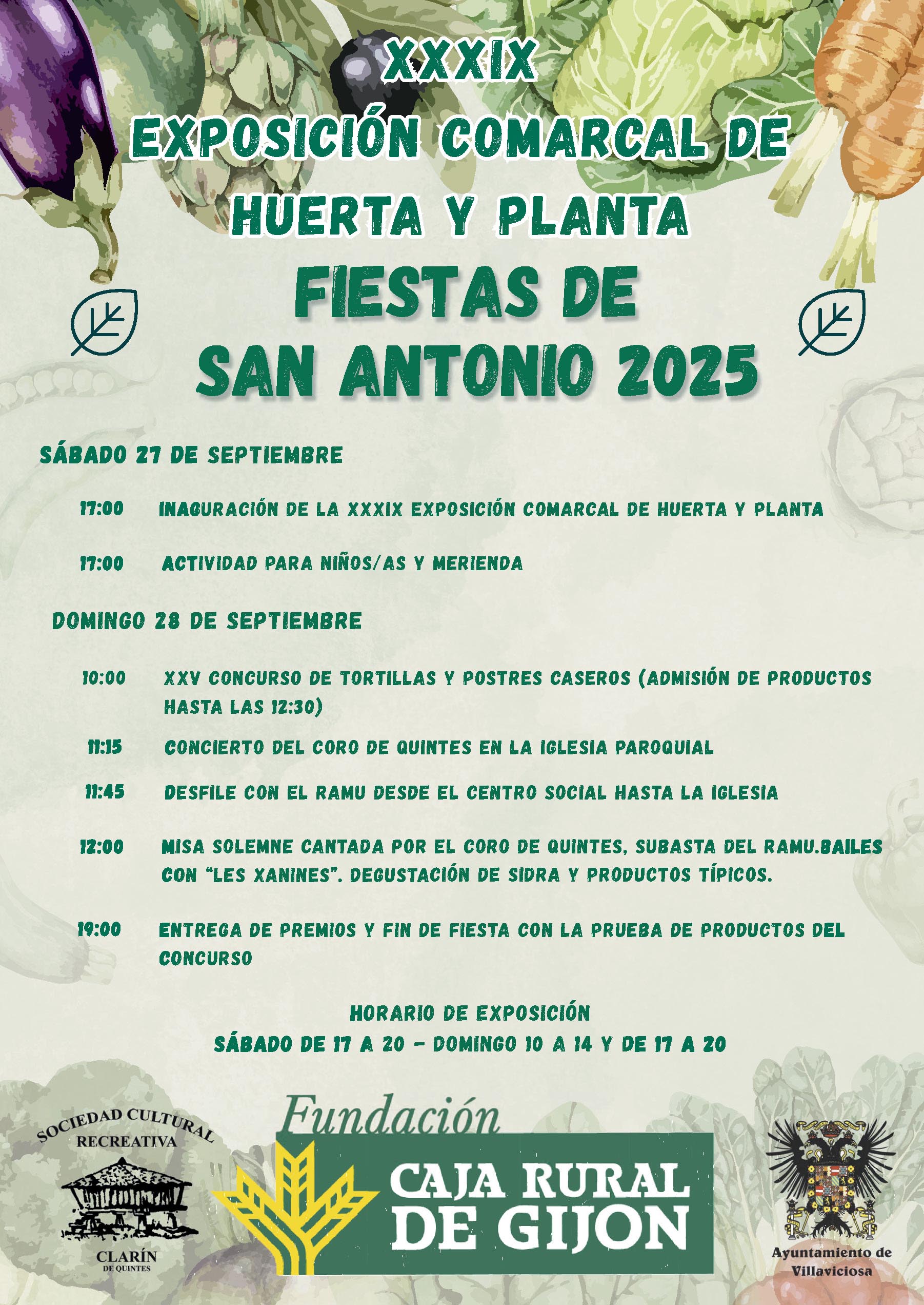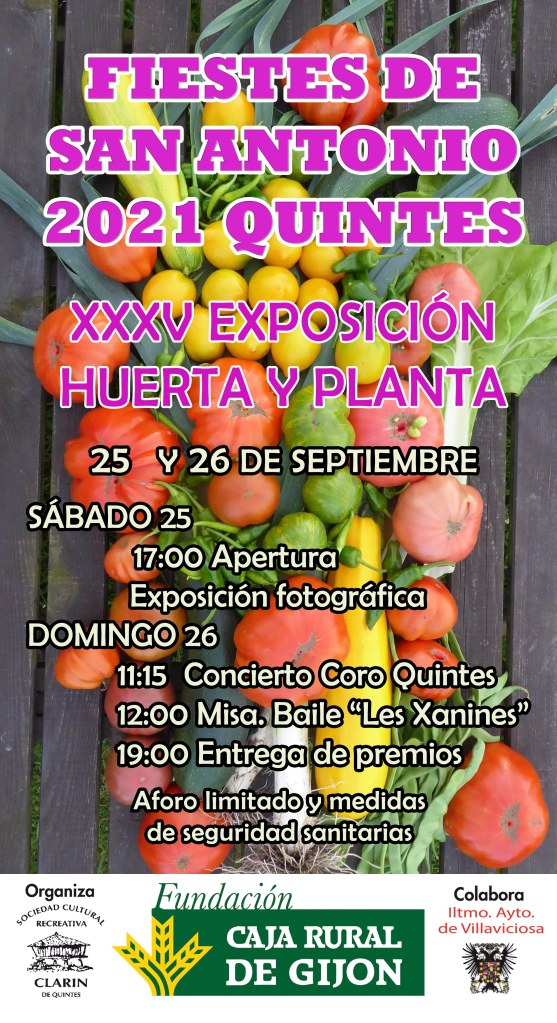 La Sociedad Cultural Recreativa CLARÍN de Quintes, con motivo de las fiestas de SAN ANTONIO, organiza para los días 25 y 26 de septiembre de 2021 la XXXV EXPOSICIÓN COMARCAL DE LA HUERTA, con los siguientes Premios: