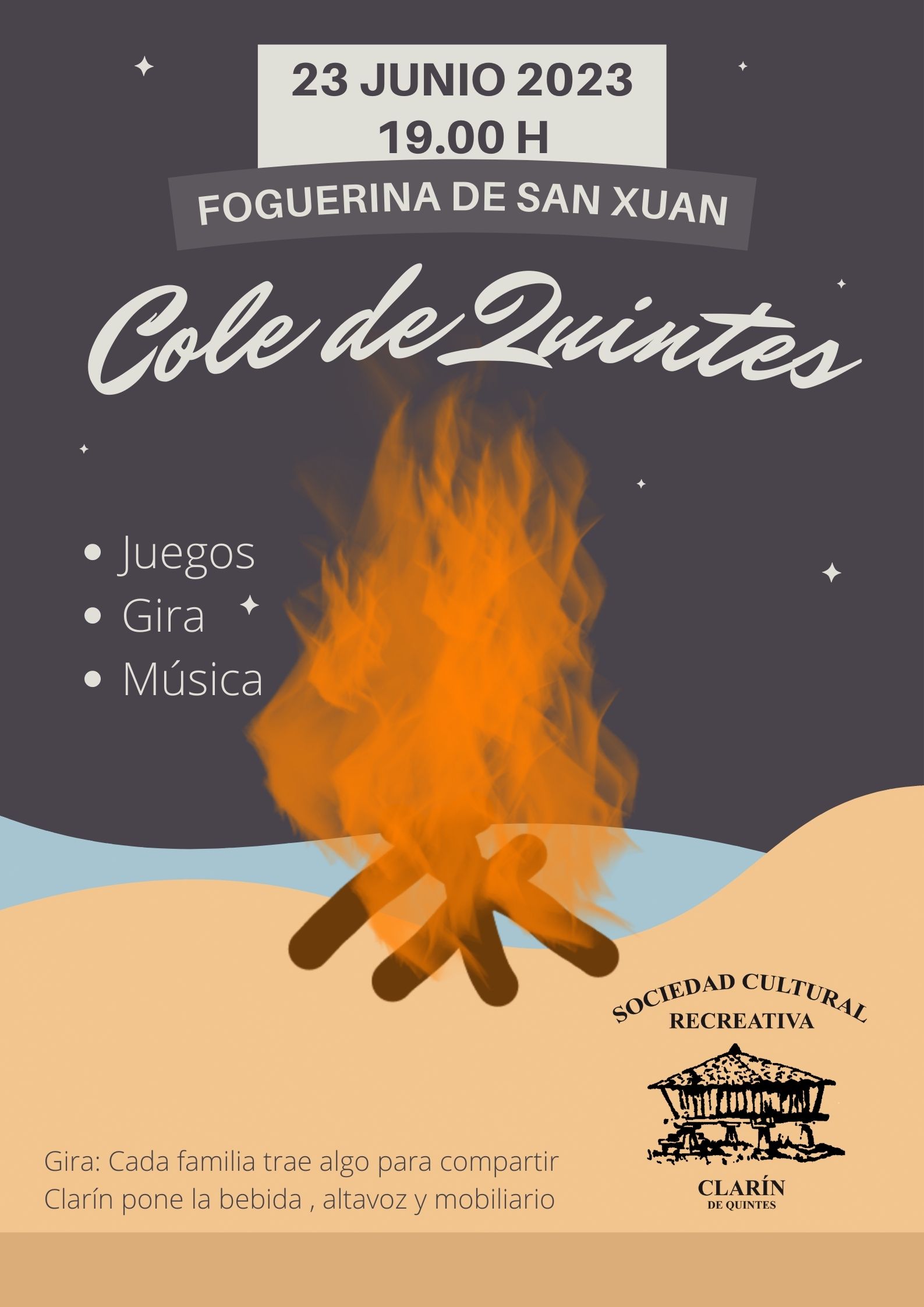 Espicha para los socios de la S.C.R. Clarín en nuestro local social. Retirada de invitaciones de socios en el kiosco “La Carbayera” (Solo se podrá acceder a la cena de socios con invitación, se retirarán gratuitamente desde el sábado 30 de abril hasta el jueves 11 de mayo). Presentador Paco Bercial.