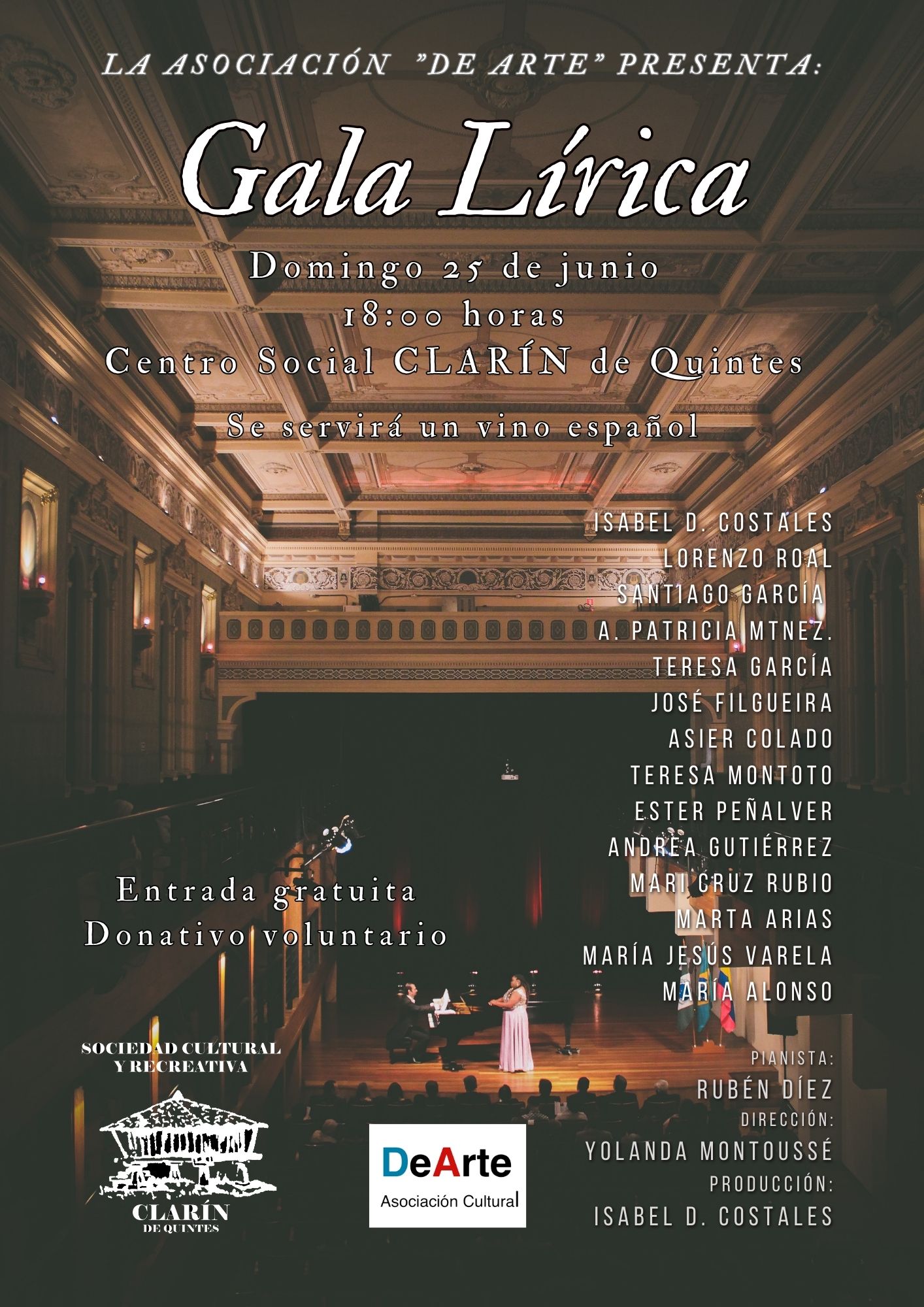 La entrega del premio será en el centro social de Clarín en Quintes el domingo 21 a las 12:00 horas con el acompañamiento musical del dúo «Noe & Chus» . Al fianlizar se servirá un vino español.
