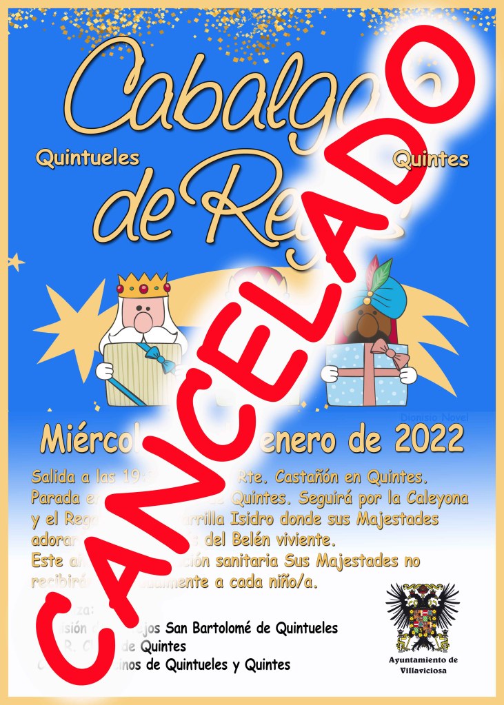 Cancelamos la cabalgata de Reyes con motivo del aumento de la transmisión y la incidencia del Covid.