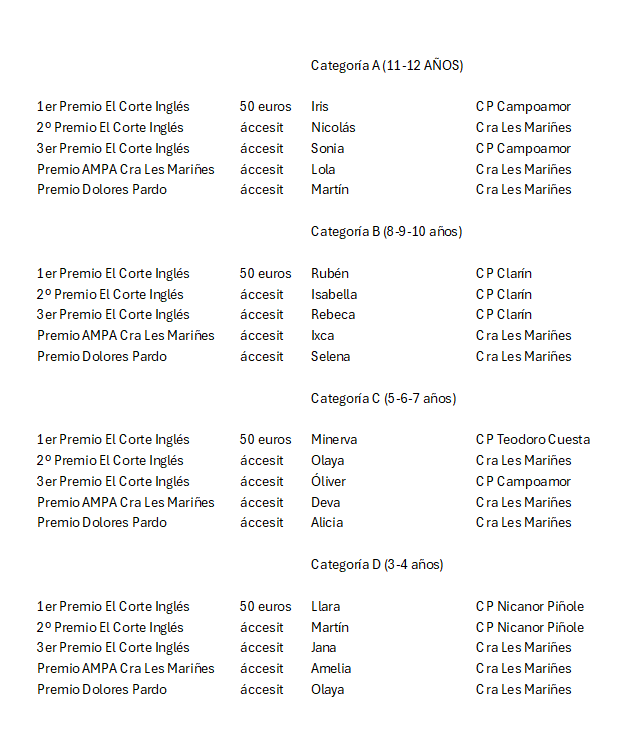 Ganadores del 37 Concurso de Dibujo Infantil 2024